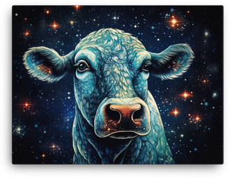 Cosmic Gaze Cow Canvas Wall Art