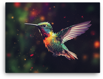 Cosmic Hummingbird Flight Canvas Wall Art bursts onto your wall with a cosmic dash of color, where a hummingbird rockets across a star-kissed canvas in bold, electric hues. This Visual...