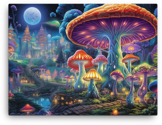 Enchanted Moonlit Mushroom Village Canvas Wall Art