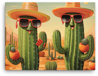 Fashionable Cacti Enjoying the Desert Sun Canvas Wall Art