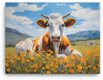 Golden Meadow Cow canvas wall art brings a splash of playful whimsy to any room or office. This vivid, fade-resistant canvas print bursts with warm golden tones and soft, dreamy...