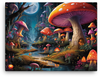 Moonlit Mushroom Fantasy Canvas Wall Art