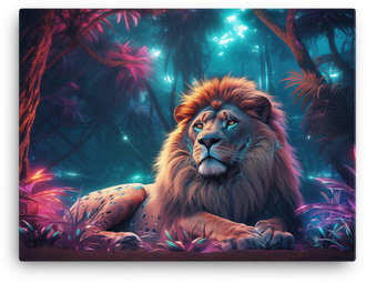 Step into a Mystical Neon Jungle where the regal lion king strides through electric hues and dreamlike shadows. This canvas wall art blends wild imagination with bold color, instantly becoming...