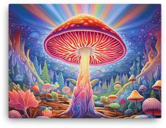 Rainbow Mushroom Forest Retreat Canvas Wall Art