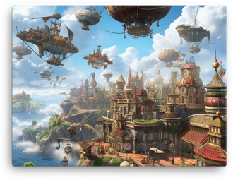 Step into a brass-tinged skyline where gears meet clouds with Steampunk Aerial City Canvas Wall Art. This bold aerial cityscape fuses retro-futurist charm with vivid urban detail, the kind of...