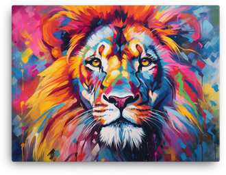 Unleash bold, wild energy in any room with the Vibrant Lion Canvas Wall Art—a daring fusion of electric hues and regal majesty. Contemporary lion portrait rendered in a fade-resistant print...