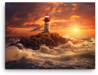 Coastal Lighthouse at Sunset Canvas Wall Art