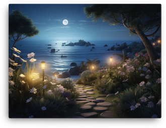Coastal Moon Garden is a canvas wall art that washes your space in moody coastal tones and moonlit whimsy, creating an instant focal point that’s equal parts calming and quirky....