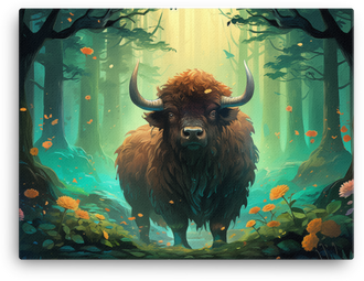Mystic Forest Bison Canvas Wall Art