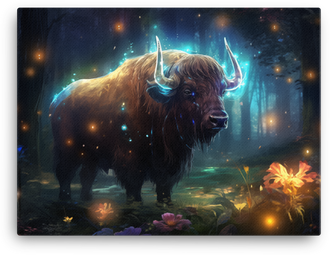 Celestial Bison in Mystic Woods Canvas Wall Art