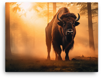Forest Guardian Bison in Morning Light Canvas Wall Art