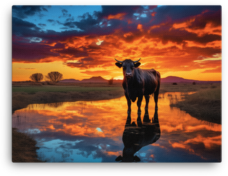 Step into twilight with Twilight Reflection Cow canvas wall art—a bold Visual Funky statement piece that adds moody elegance and playful charm to any room. This cow canvas print delivers...