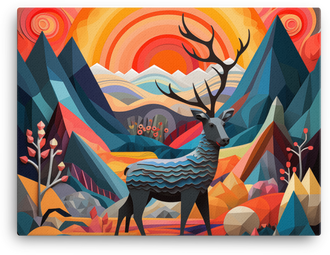 Wake up your walls with Geometric Sunrise with Majestic Deer Canvas Wall Art—a bold blend of geometric shapes and a regal deer, set in a radiant sunrise palette. A fade-resistant...
