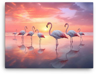 Sunset Flamingo Reflections Canvas Wall Art