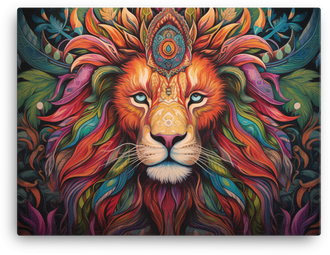 Psychedelic Jungle Lion canvas wall art unleashes bold energy—a vivid color-splashed roar of jungle whimsy and retro-funky flair that instantly commands attention in any room. This fade-resistant canvas print rests...