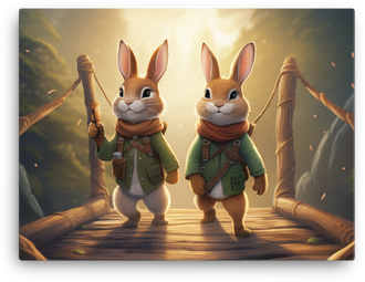 Adventurous Bunnies on Bridge Canvas Wall Art
