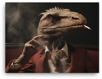 Retro Raptor Gentleman in Red Canvas Wall Art