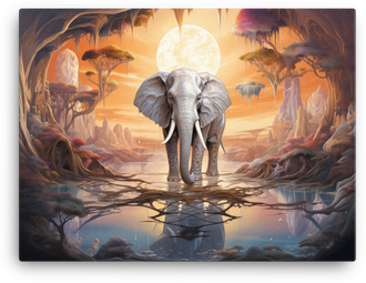 Step into a Surreal Lunar Landscape, where an elephant strolls across a moonlit horizon—this Surreal Lunar Landscape Elephant canvas wall art delivers dreamlike whimsy with bold, Visual Funky energy for...