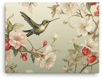 Hummingbird in Spring Blossom Canvas Wall Art bursts to life with a flutter of color, a delicate botanical-inspired moment that turns any wall into a tiny garden of movement and...