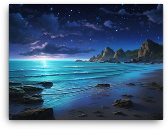 Starry Night Over the Coastal Shore Canvas Wall Art