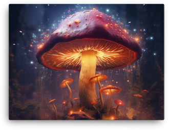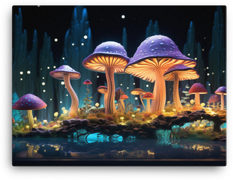 Enchanted Forest Mushrooms at Night Canvas Wall Art