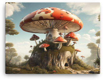 Enchanted Mushroom House Fantasy Landscape Canvas Wall Art