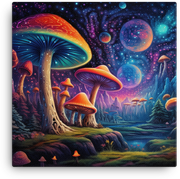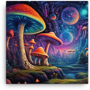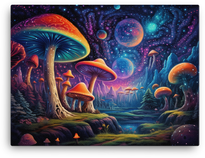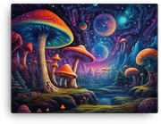 Step into a Cosmic Dawn with the Cosmic Dawn Mushroom Vista Canvas Wall Art—a surreal blend of celestial hues and whimsical mushrooms that instantly sparks curiosity in any room.