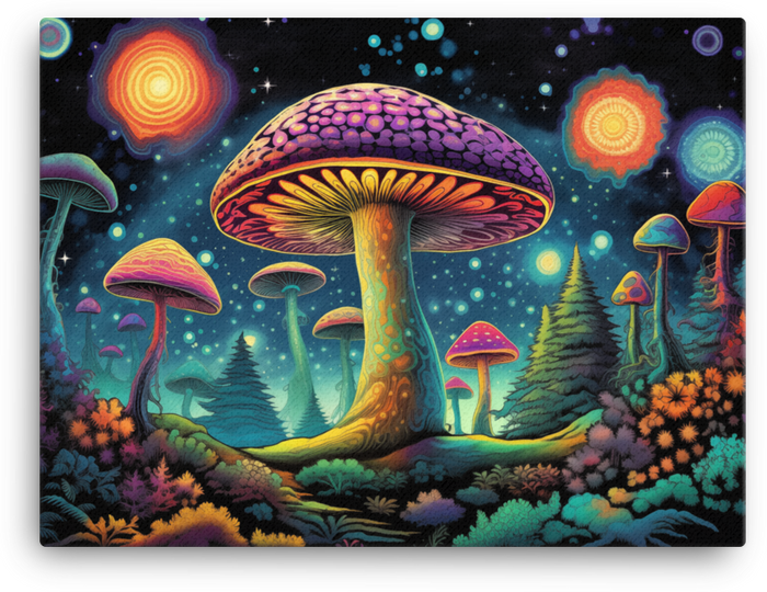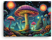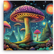 Galactic Mushroom Awakening canvas wall art invites you to step into a cosmic forest where neon fungi drift among starlit swirls.
