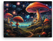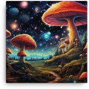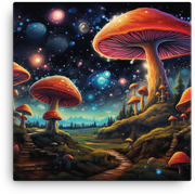 Dive into a cosmic forest with Galactic Mushroom Trail, a canvas wall art where neon mushrooms glow across a starry, otherworldly backdrop. This piece blends fantasy whimsy with bold color for an instantly funky focal point in any space.
