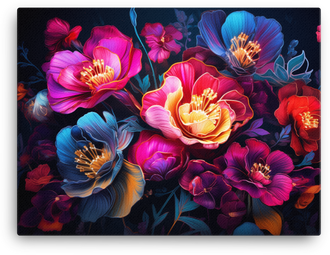 Nocturnal Floral Radiance canvas wall art bursts with midnight blooms that glow against a velvety backdrop, a vibrant centerpiece that mirrors Visual Funky’s bold, creative vibe and invites your space...