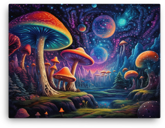 Galactic Mushroom Awakening canvas wall art invites you to step into a cosmic forest where neon fungi drift among starlit swirls. This canvas print delivers a vivid, fade-resistant experience on...