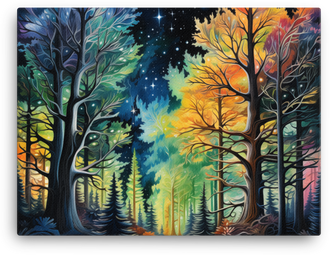 Starry Night Over the Four Seasons Forest Canvas Wall Art