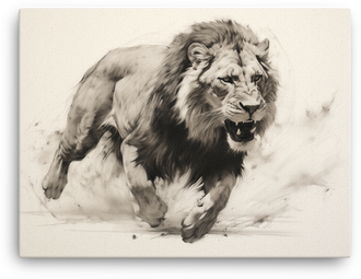 Monochrome Charge Lion Canvas Wall Art