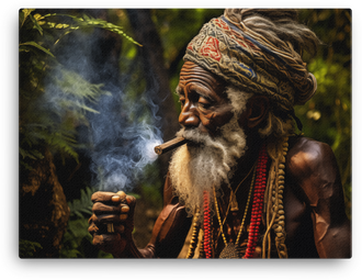 Wise Elder with Cigar in Mystical Forest Canvas Wall Art