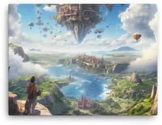 Dive into whimsy with the Floating Island Explorer canvas wall art—a vivid, dreamlike scene that drifts into your space with a splash of Visual Funky flair. Printed on acid-free, PH-neutral...