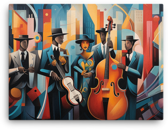 Jazz Age Rhythms in Abstract City Canvas Wall Art