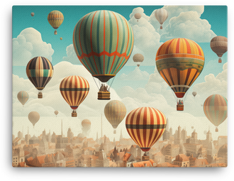 Let vintage balloons drift over your walls with Vintage Balloons Over Old Town Rooftops, a canvas wall art that captures a nostalgic scene of balloons above time-worn rooftops. This piece...