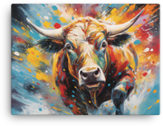 Ready to make a statement? Add to cart now to bring this bold Abstract Splash Cow canvas into your home.