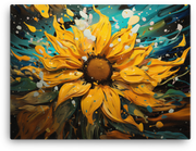 Bold, sunlit energy meets edgy abstraction in Abstract Splatter Sunflower—a canvas wall art that fuses a sunflower motif with expressive splashes of color.