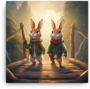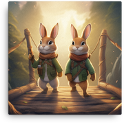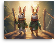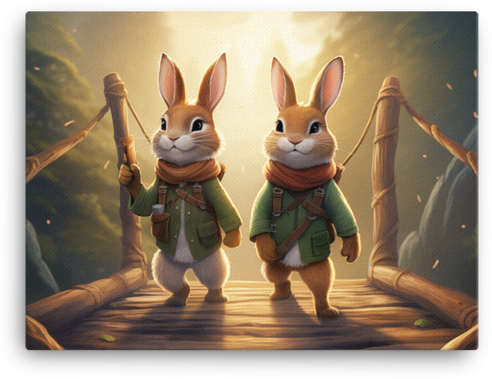 Leap into whimsy with Adventurous Bunnies on Bridge—where playful woodland charm meets bold, Visual Funky energy.