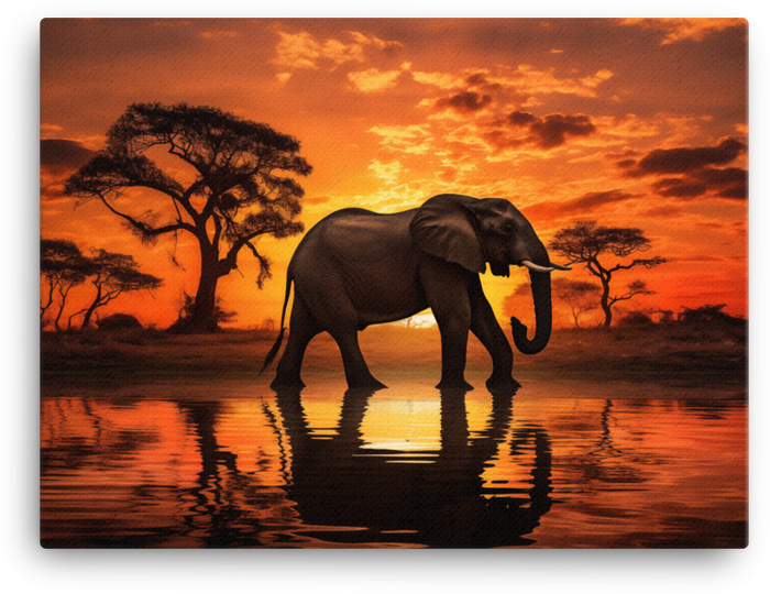 Step into a warm savannah glow with African Sunset Silhouette Elephant Canvas Wall Art—a bold Visual Funky statement piece where graceful elephant silhouettes meet a luminous sunset horizon in rich amber and ink-blue tones. This canvas captures a dreamy, contemporary mood with studio-quality flair.