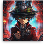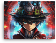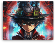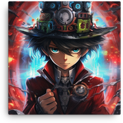 Dive into neon-bright energy with an anime character wearing a gleaming mechanized hat—a bold fusion of playful anime flair and futuristic whimsy. This canvas wall art is a dynamic focal point for daring spaces.