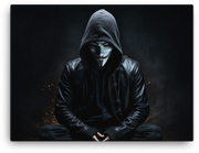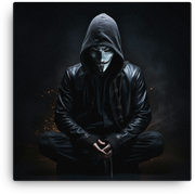 Step into the shadows with Anonymous Shadow: Mysterious Masked Figure, a canvas wall art that turns any wall into a stage for intrigue and style.