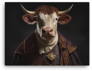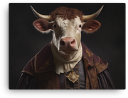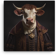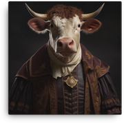 Step into Visual Funky's court of whimsy with the Aristocratic Cow Portrait, a canvas wall art that fuses regal pedigree with cheeky charm. This canvas print uses a fade-resistant finish on an acid-free, PH-neutral poly-cotton base. The 20.5 mil blend brings crisp color and soft texture to any room.