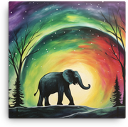 Aurora Silhouette Elephant Canvas Wall Art bursts onto your wall with a dreamlike aurora glow framing a graceful elephant silhouette—bold, whimsical, and utterly Visual Funky.