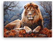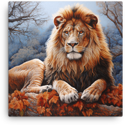 Capture autumnal majesty with the Autumn Sovereign Lion Canvas Wall Art—a regal wildlife centerpiece that fuses a noble lion silhouette with a blazing autumn palette.