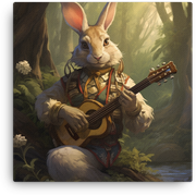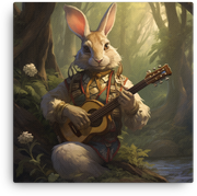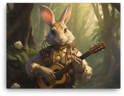 Bard Rabbit Playing a Guitar in the Forest Canvas Wall Art