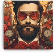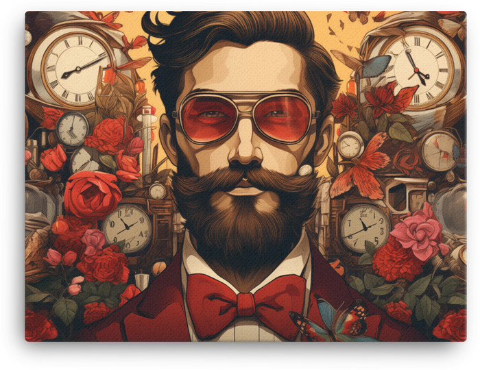 Bearded gentleman with Timepieces and Roses Canvas Wall Art bursts with retro swagger and floral whimsy, turning any wall into a playful, fashion-forward gallery.