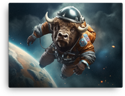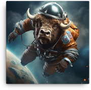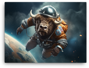 Launch your walls into orbit with the Bison Astronaut Floating in Space canvas wall art—a bold Visual Funky fusion of rugged wildlife and interstellar whimsy that's perfect for home decor enthusiasts.