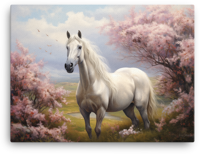 Cherry Blossom Serenity Horse Canvas Wall Art